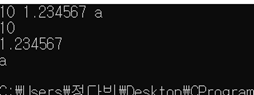 #include <stdio.h> int main() { int a; float b; char c; scanf_s("%d %f %c", &a, &b, &c); printf("%d\n%f\n%c\n", a, b, c); return 0; }