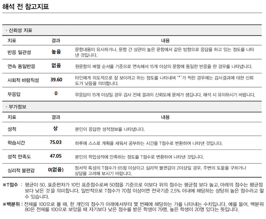 심리적 불편감은 학습전략을 검사하는 것이라 별 상관이 없다고 합니다.