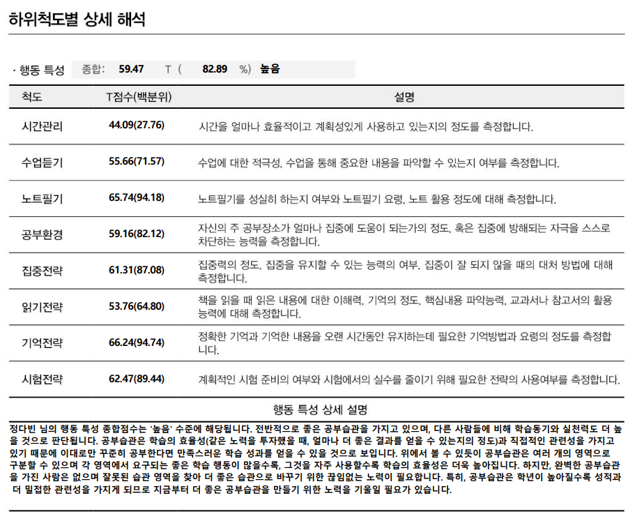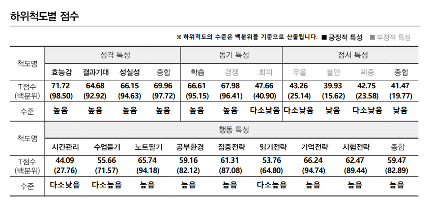 학습은 공부 목적이나 동기가 뚜렷할 경우, 공부방법을 알고 있을 경우 점수가 높다고 합니다.