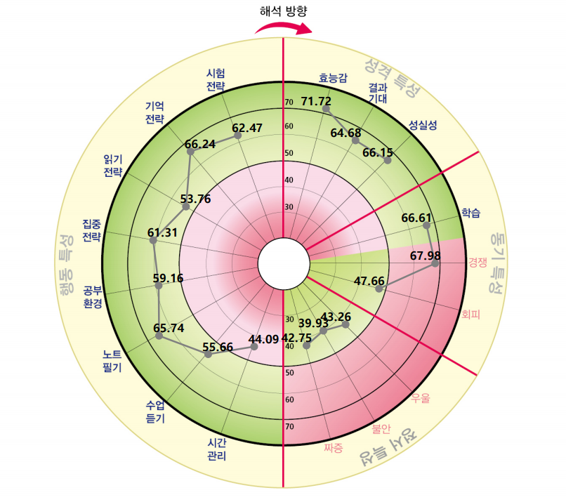 회피는 내가 어떤 과목을 태생적으로 못한다고 생각하는 과목이 많으면 점수가 높다고 합니다.