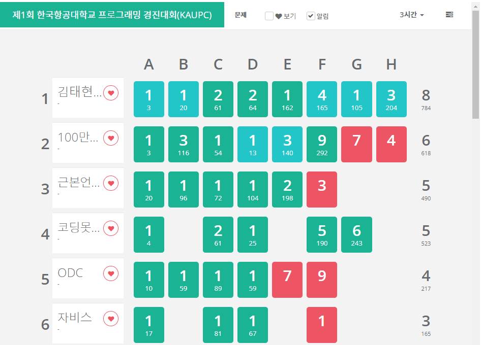 제 팀은 최종적으로 모든 문제를 풀었고 1등을 하였습니다.