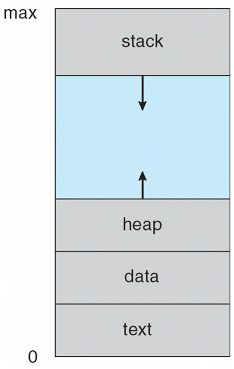 이때 스택은 아래 방향으로, 힙은 윗 방향으로 크기가 커지는데 운영체제는 서로 겹치지 않도록 만들어야 한다.