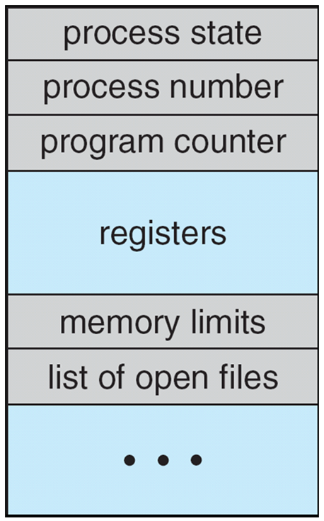 각 프로세스는 운영체제에서 프로세스 제어 블록(PCB, 태스크 제어 블록)에 의해 표현된다.