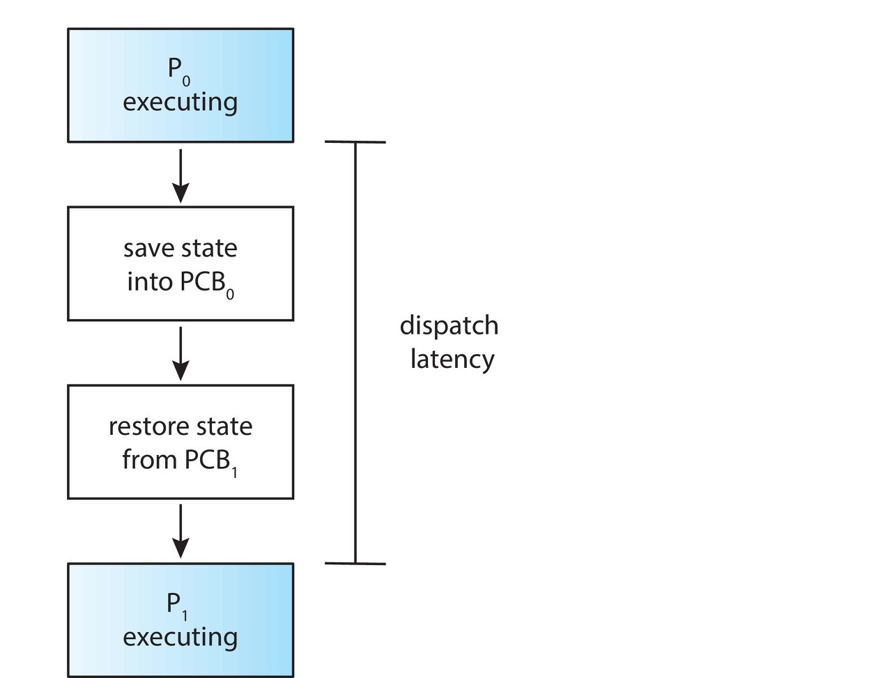 디스패처는 CPU 스케줄링 기능에 포함된 CPU 코어의 제어를 CPU 스케줄러가 선택한 프로세스에 주는 모듈이다. 디스패처는 아래와 같은 작업을 한다.