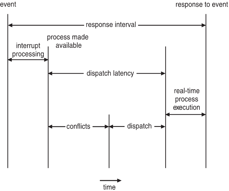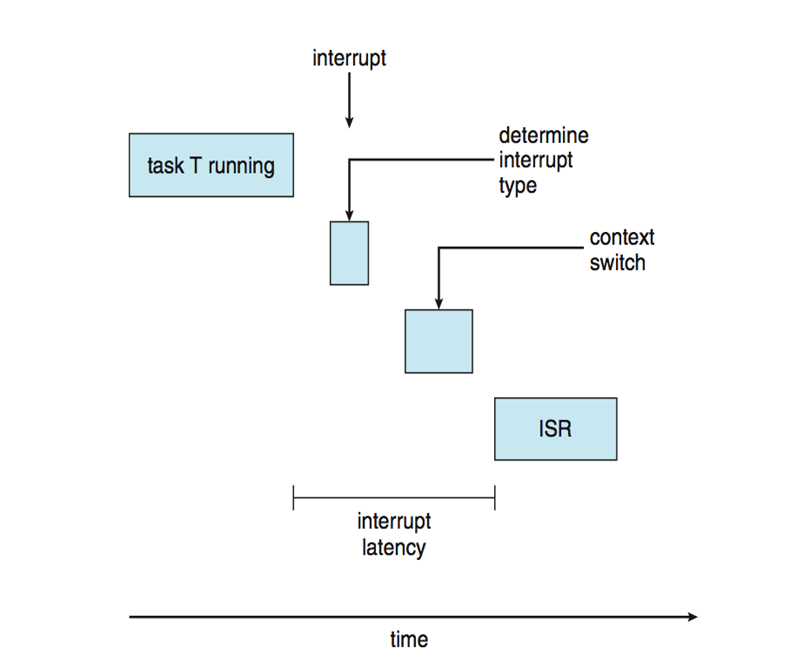 시스템은 일반적으로 실시간으로 발생하는 이벤트를 기다린다. 이벤트가 발생하면 시스템은 가능한 빨리 응답을 하고, 그에 맞는 동작을 수행한다. 이때 이벤트 지연시간은 이벤트가 발생하여 그에 맞는 서비스가 수행될 때까지의 시간을 말한다.