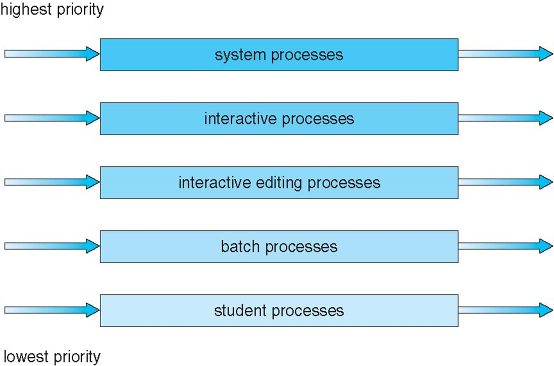그리고 큐와 큐 사이에 스케줄링도 존재해야 하며, 일반적으로 아래와 같은 우선 순위를 가지게 된다.