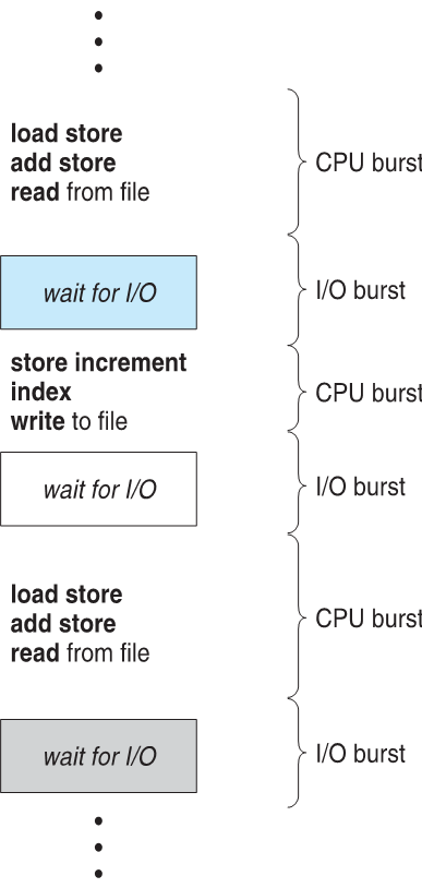 프로세스 실행은 CPU 버스트와 I/O 버스트가 계속 반복된다.