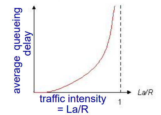 그런데 여기서는 L * a만큼의 데이터를 전송하라고 하니 그 값이 커지면 큐에 쌓이는 패킷이 많아져서 큐잉 지연이 일어나게 된다.