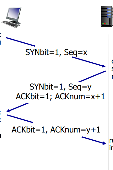 SYN 세그먼트를 포함하는 IP 데이터그램이 서버에 도착했을 때, 서버는 SYN 세그먼트를 뽑아낸다. 이후 연결에 TCP 버퍼와 변수들을 할당하고, 클라이언트로 보내는 세그먼트 헤더에 3가지 정보를 포함한다.