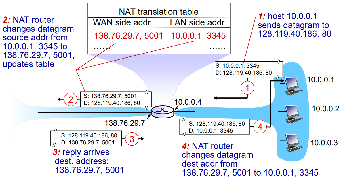 외부에 있던 정보가 내부로 들어와서 전달을 해야한다면 NAT 변환 테이블을 사용하여 내부 호스트에 전달을 한다.