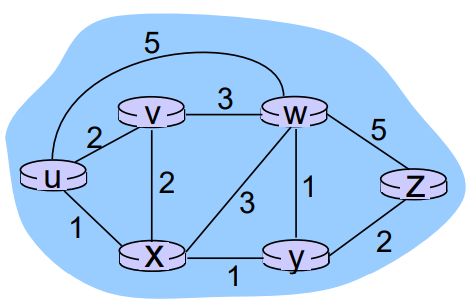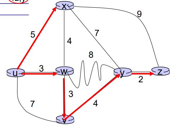 Step N' D(v), p(v) D(w), p(w) D(x), p(x) D(y), p(y) D(z), p(z) 0 u 7, u 3, u 5, u ∞ ∞ 이제 여기서 최소 비용 경로를 가지는 w를 보자