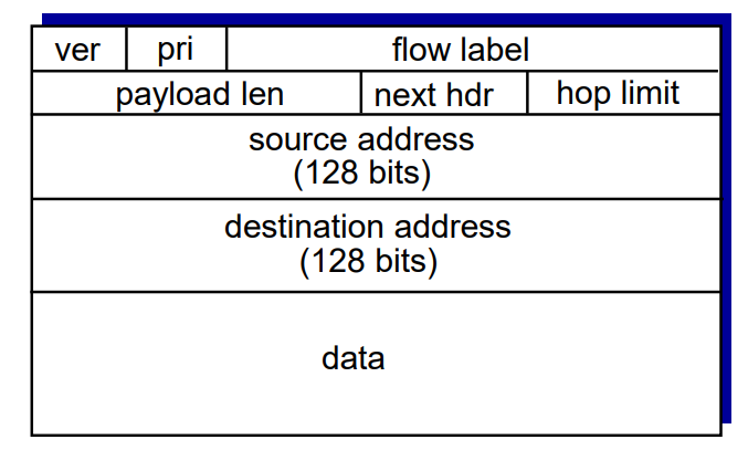 3. flow label: 오디오/비디오와 같이 품질/실시간 서비스는 한 흐름으로 생각하여 그 흐름의 패킷 레이블링을 한다.