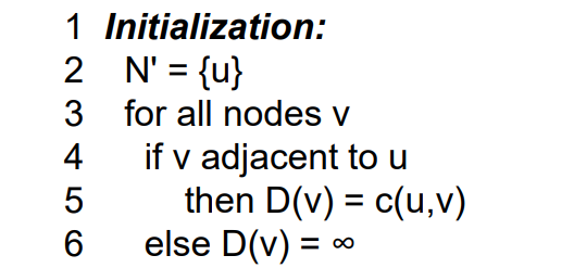 예를 들어 출발 노드 u와 도착 노드 v가 있을 때, v의 이웃 노드인 x에서 u → x로 갈 때 필요한 c(u, x) 정보를 가지고 있을 것이다. 그러면 도착 노드 v는 이웃 노드 x로부터 얻은 정보를 통해 c(u, x) + c(x, v)를 계산하여 이중에서 최솟값을 고르면 된다.