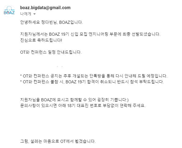 보아즈(BOAZ) 데이터 엔지니어링 19기 지원 후기후기/활동 후기 2022. 7. 19. 01:54반응형