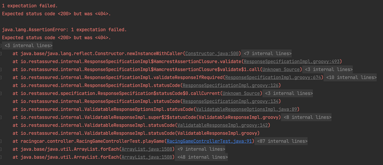 콘솔창을 확인해보니 RacingGameController는 Bean으로 잘 등록이 된 것을 확인할 수 있었다.