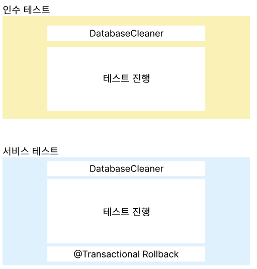 글을 쓰다가 알게 됐는데, DatabaseCleaner를 AfterEachCallback이나 AfterTestExecutionCallback으로 바꾸면 서비스 테스트에서는 DatabaseCleaner를 추가하지 않아도 되겠네요.