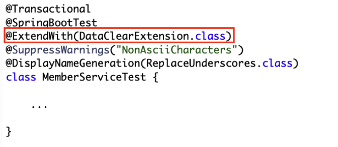 어쨌든 DatabaseCleaner를 사용하게 된다면 BeforeEachCallback을 구현했으니 테스트 메서드가 실행되기 전에 모든 데이터를 초기화하게 됩니다.