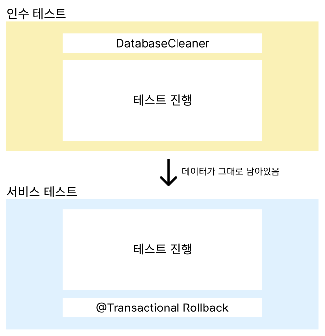 마지막 인수 테스트가 끝나면 데이터가 남아있는 상태에서 첫번째 서비스 테스트가 진행되기 때문에 문제가 발생했던 것 입니다.