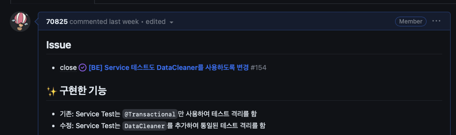 이거는 정말 운이 좋게도 인수 테스트에 저장된 데이터가 서비스 테스트에서도 해당 데이터를 통해 테스트하는 상황이라 발견했던 것이지, 만약 다른 서비스 테스트가 먼저 수행되었으면 에러가 발생이 안됐을 수도 있었습니다.
