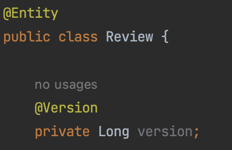 먼저 Review 엔티티에 @Version과 Version 필드를 추가합니다.