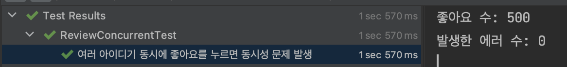 이렇게 동시성 문제도 성공적으로 해결할 수 있게 되었습니다.