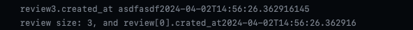 리뷰 작성 시각이 거짓인 경우를 확인하기 위해 로그를 추가한 상태로 Github Actions를 돌려보니 위 사진과 같이 나왔다.