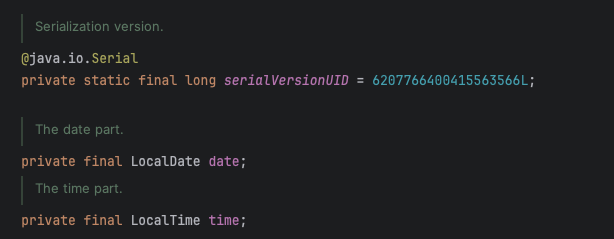 Java의 LocalDateTime은 LocalDate와 LocalTime으로 이루어져 있다.