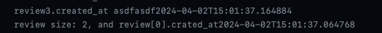 당연히 3번 리뷰보다 1번, 2번 리뷰가 먼저 작성됐으므로 정답은 [1번 리뷰, 2번 리뷰]만 actual에 저장되어야한다.