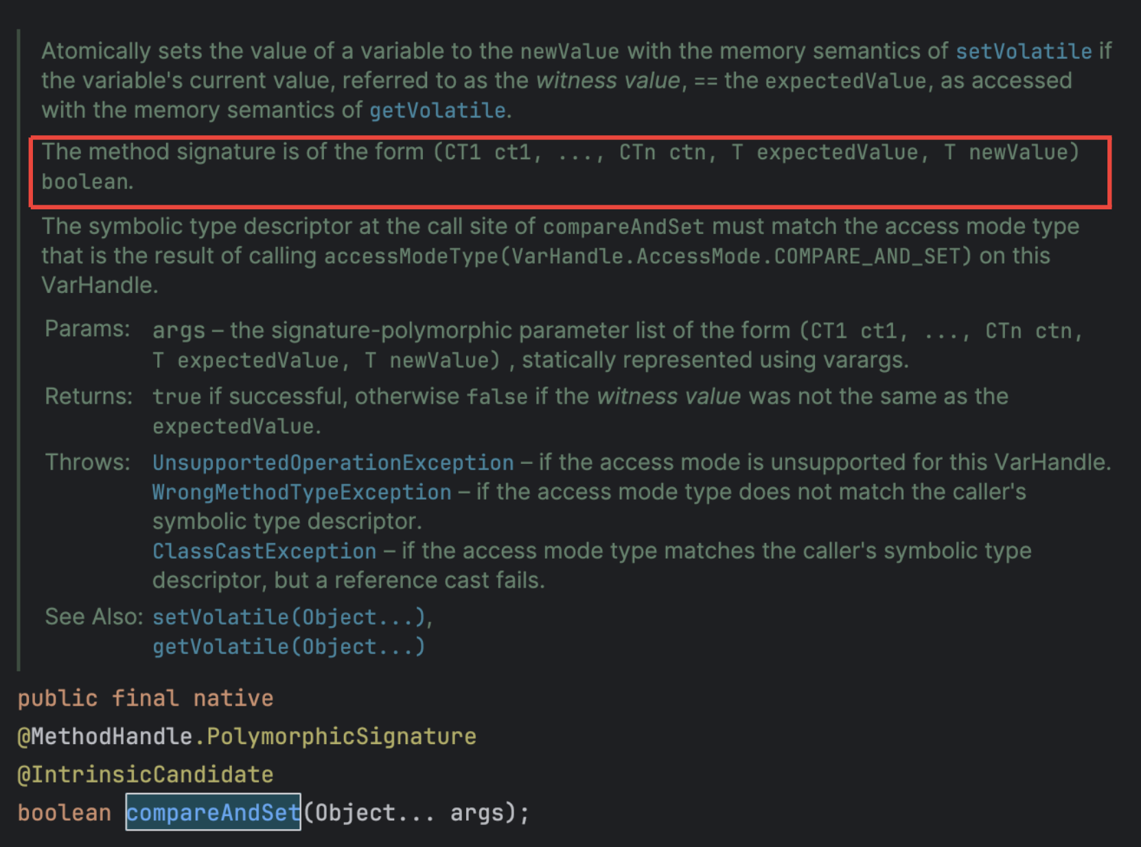 Java 기준으로는 (CT arguments, expectedValue, newValue)로 이루어진다.