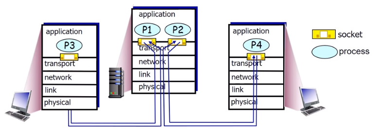 - multiplexing: 여러 소켓에서 데이터를 받아 세그먼트를 만들고, Network Layer로 전달