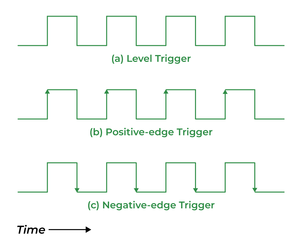 https://www.geeksforgeeks.org/edge-triggering-and-level-triggering/ - Level Trigger는 출력 변화가 일어나는 기간동안 계속 감지한다.
