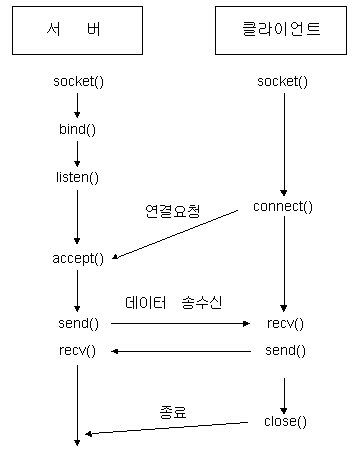 - recv(), send() : 새로운 소켓에서 클라이언트와 1대1로 데이터를 주고 받음