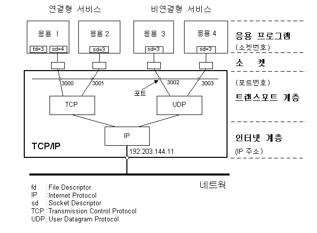 출처: http://jkkang.net/unix/netprg/chap2/net2_1.html 소켓 번호는 응용 프로그램마다 고유한 번호를 가지고 있는데, 파일 디스크립터 번호를 같이 사용한다. 이때 파일 디스크립터(FD)란 사용자가 특정 파일에 접근하려면 파일 관리자로부터 파일에 접근할 수 있는 권한을 획득해야하는데, 해당 파일 접근 권한을 파일 디스크립터라고 한다. 파일이 열리거나 I/O 작업을 수행해야하면 고유한 파일 디스크립터 번호를 할당하고, 해당 값을 통해 파일의 읽기 / 쓰기 / 실행이 가능하다. 이때 파일 디스크립터 번호에서 0, 1, 2는 값이 이미 정해져있다.