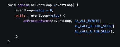 https://github.com/redis/redis/blob/unstable/src/ae.c Redis는 Event Loop가 stop이 아닐 때까지 계속 돌아간다.