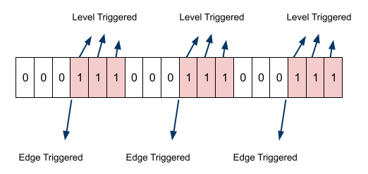 select(), poll()은 Level Trigger만 지원하지만, epoll()은 Level Trigger, Edge Trigger를 지원하며 기본값은 Level Trigger라고 한다. 여기서 Trigger란 디지털 회로에서 출력의 변화를 감지할 때 사용하는 개념이다.