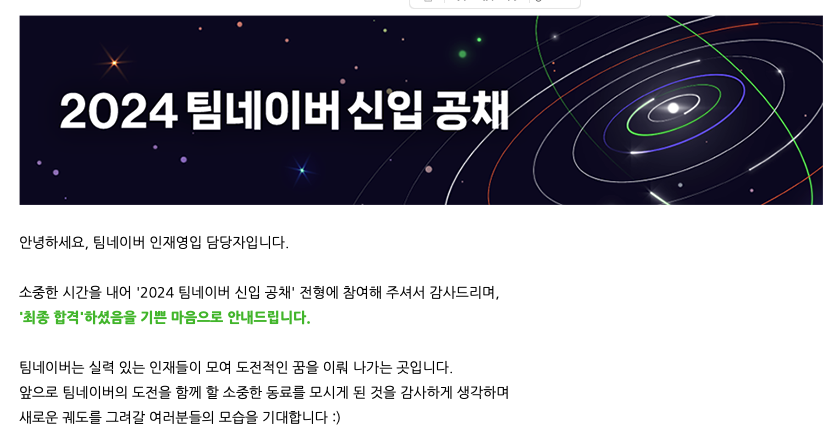 2024 팀네이버 신입 공채 Tech 최종 합격 후기후기/활동 후기 2024. 6. 17. 20:24반응형